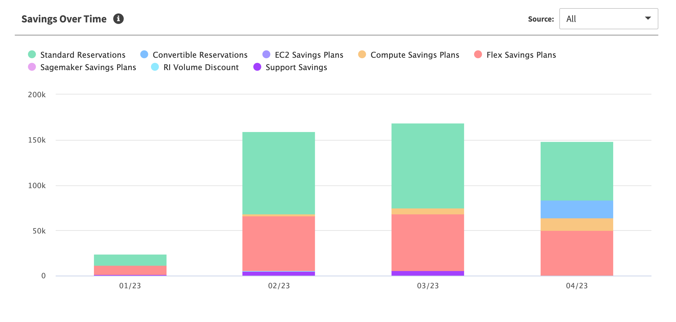 • All: This source filter displays all savings provided by Eco, Non-Eco and Support Savings.